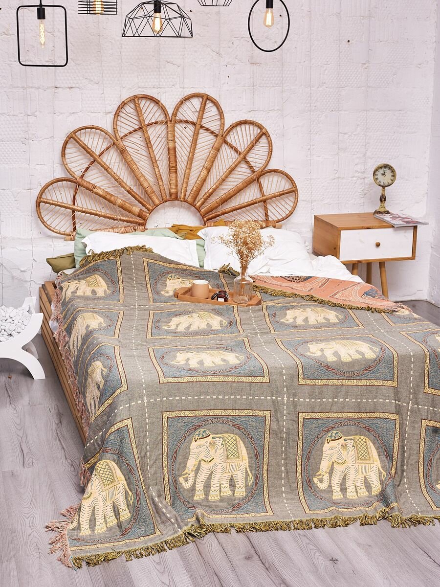 Муслиновый двусторонний плед Sundelica "Три слона" 200x230 см для дивана и кровати, для дома и дачи 4 896 ₽