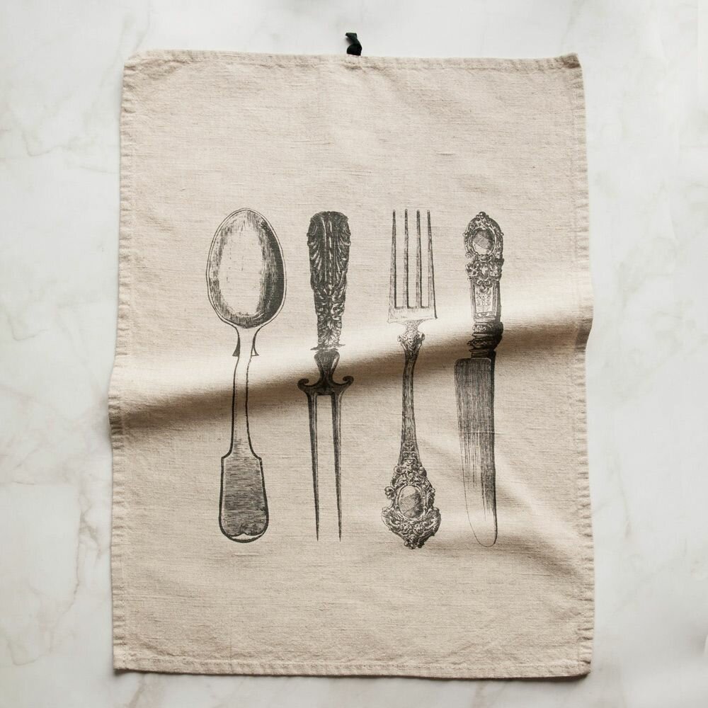 10 цен на Набор полотенец 2 шт. 38х56 см, принт "столовые приборы" и однотонное