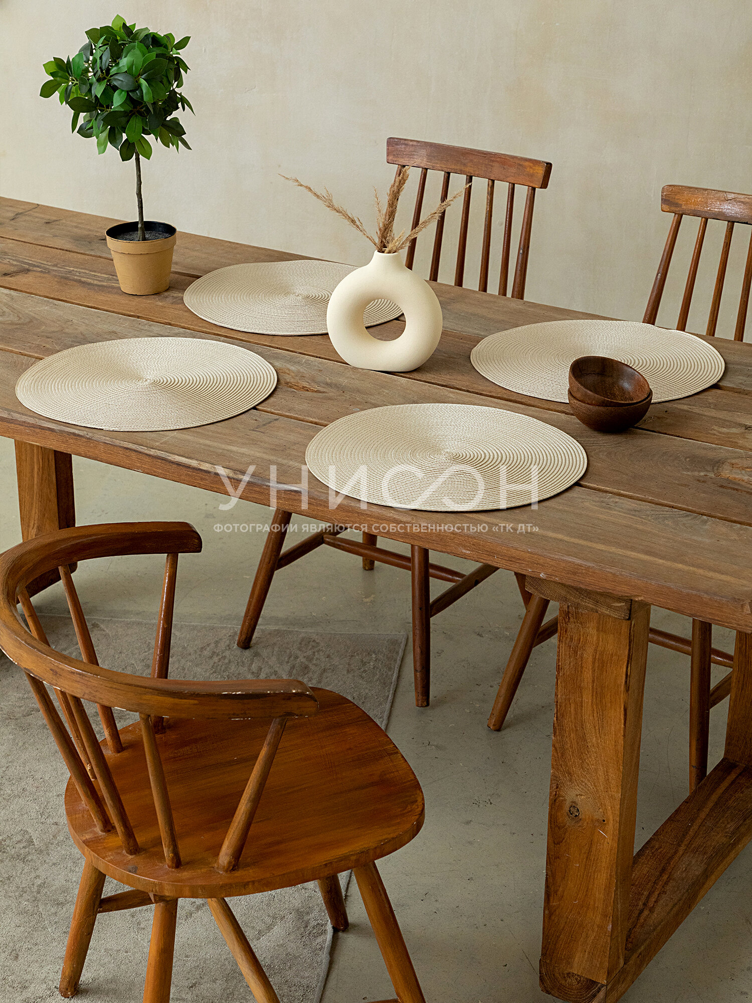 Комплект салфеток/ плейсматов /подставок плетеных круг D38 (4 шт.) "Унисон" "Унисон" бежевый 400 ₽