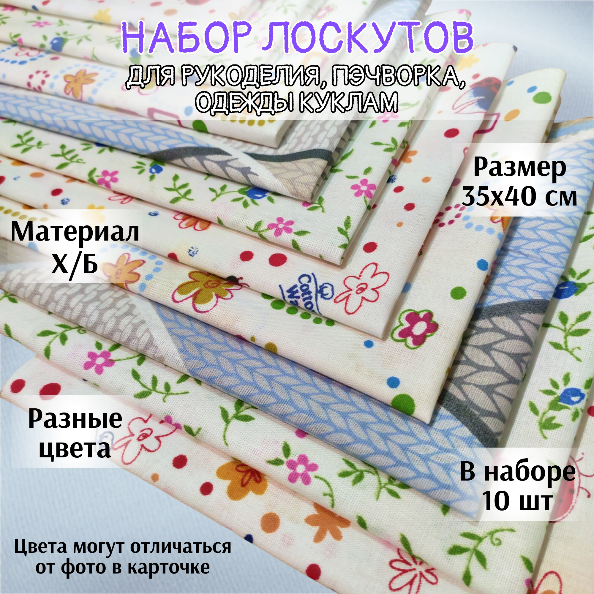 10 цен на Ткань хлопок 100% / Набор лоскутов для рукоделия / 10 штук / 35х40 см