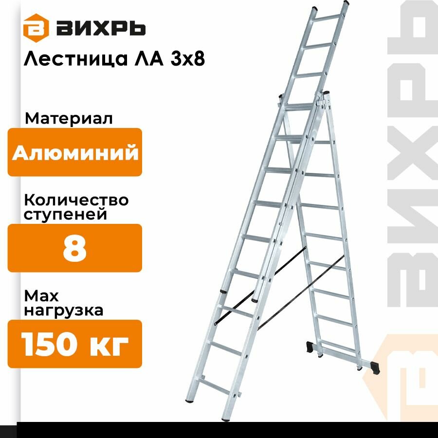 Лестница алюминиевая Вихрь трёхсекционная ЛА 3х8 73/5/1/21 информация: