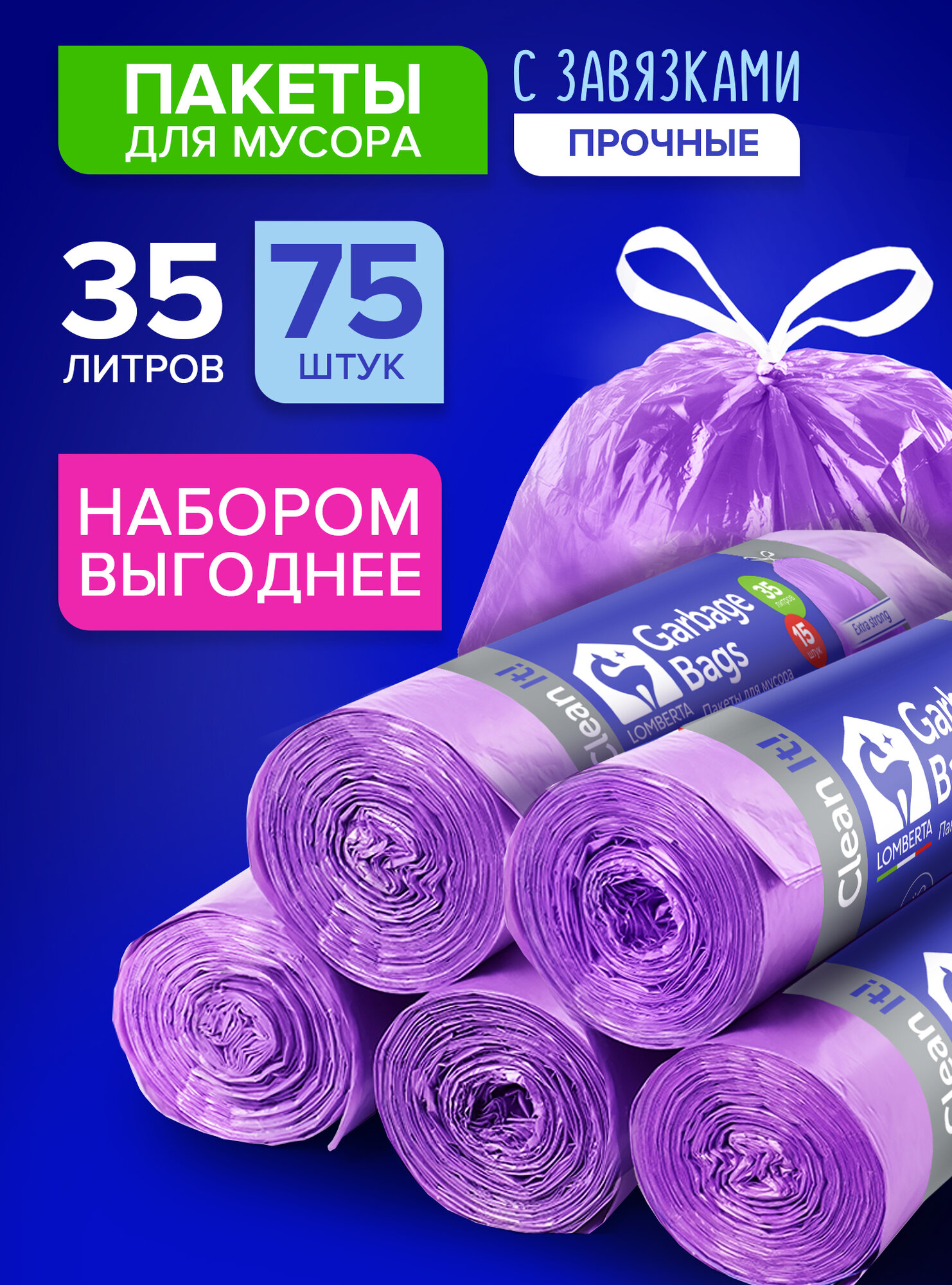 Отзывы на Мешки для мусора Lomberta, прочные с завязками в рулоне, 35 литров, 75 шт