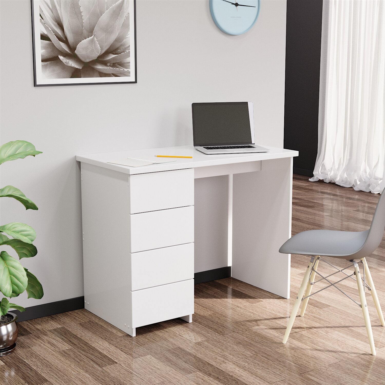10 цен на Стол письменный Белый с 4 ящиками школьный, компьютерный игровой стол, рабочий стол для ноутбука 95*50*75