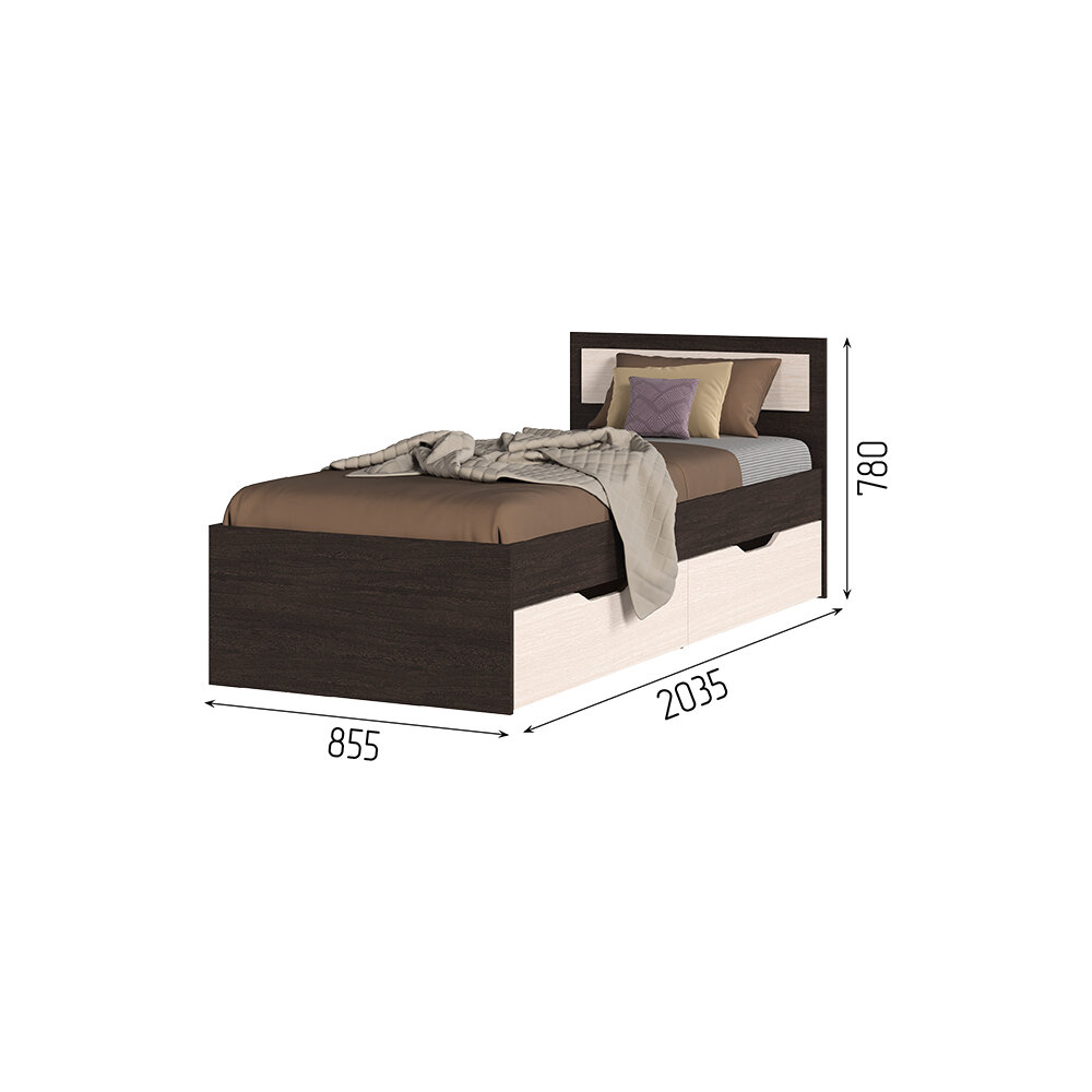 Односпальная кровать с ящиками Стендмебель, Гармония КР 607, 85х203х78см, венге-белфорт информация:
