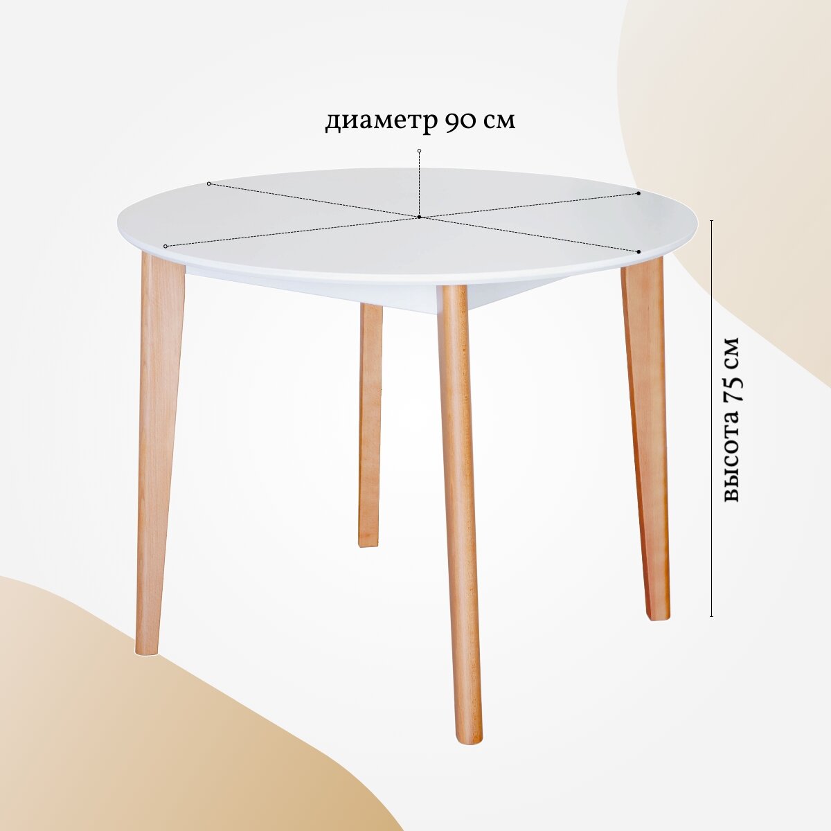 Стол кухонный круглый / стол обеденный круглый SKYLAND LYKKE TR-90, белый/бук, 90х90х75 см 13 298 ₽