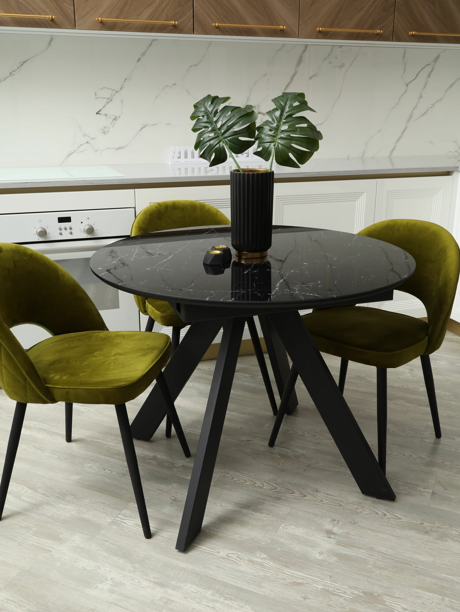 Стол обеденный раскладной "бонжур" круглый 100х100х76 в стекле черный мрамор информация: