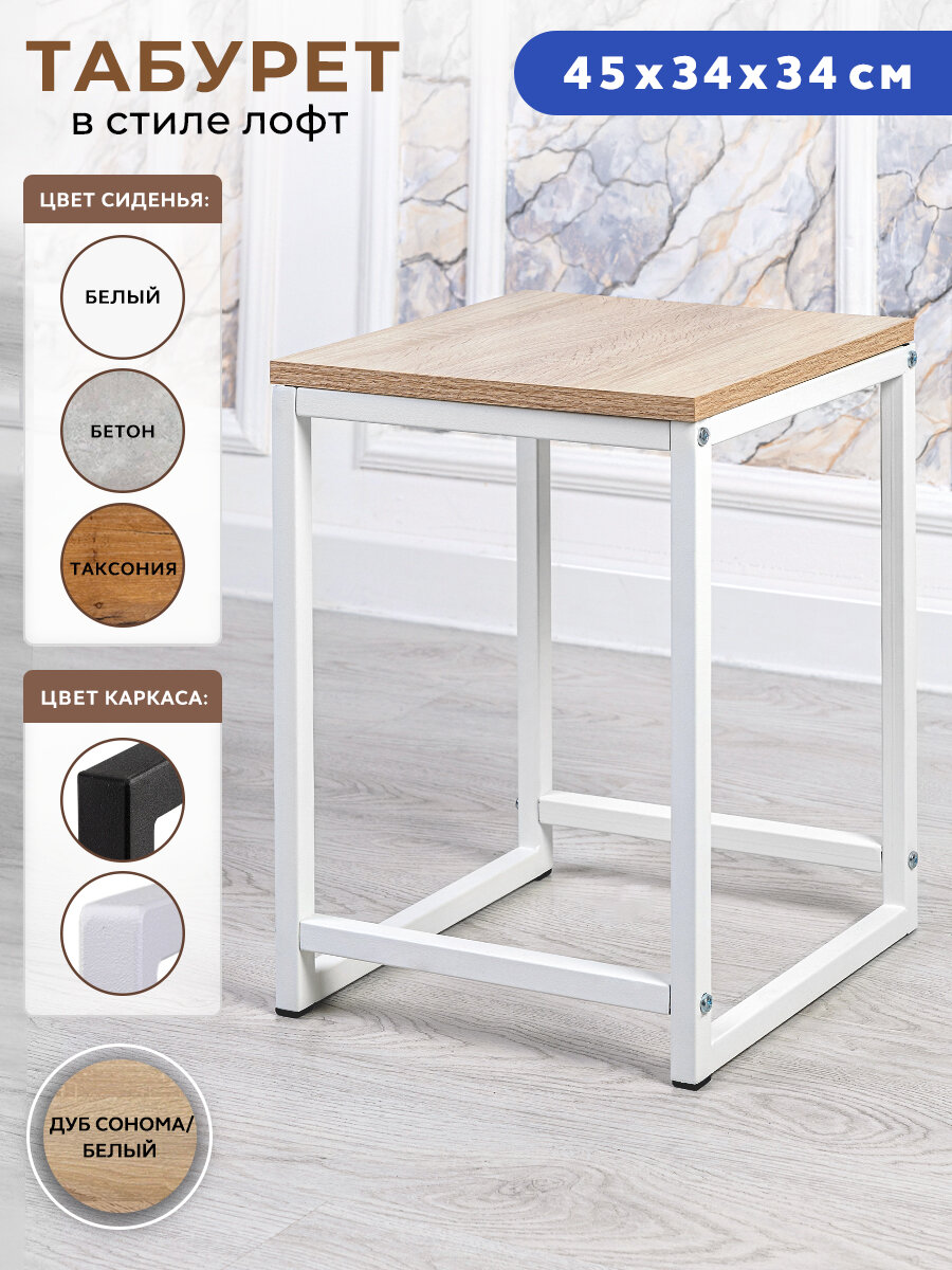 Табурет для кухни и ванной деревянный металлический, мебель лофт, стул, цвет дуб сонома информация: