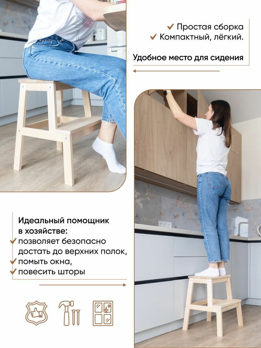 Отзывы на Табурет стремянка для кухни деревянный, табуретка лесенка, мебель из дерева для дома, дачи, бани, сада