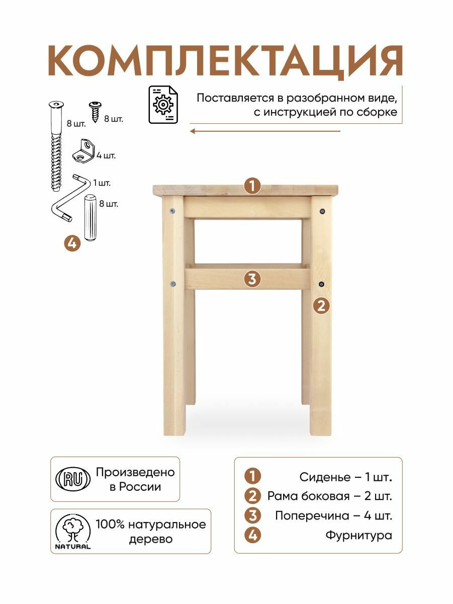 Табурет для кухни деревянный, квадратный, табуретка кухонная, мебель из дерева для дома, дачи, бани и сауны информация: