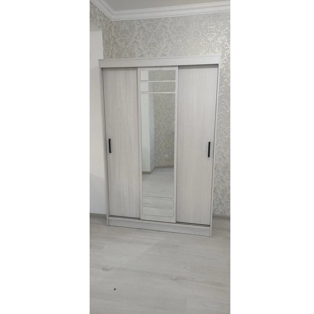 Первый Мебельный Шкаф-купе для одежды Сакура трехдверный с зеркалом, с полками, продольная штанга, 150х61х222 см, Дуб Сонома / Белый 16 990 ₽