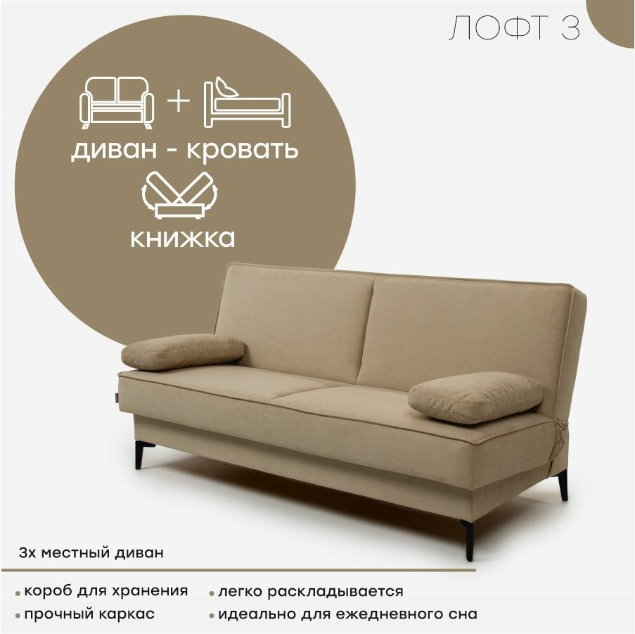 10 цен на Прямой диван кровать Лаунж, независимый пружинный блок, трехместный, цвет бежевый Мебельная Фабрика Аврора