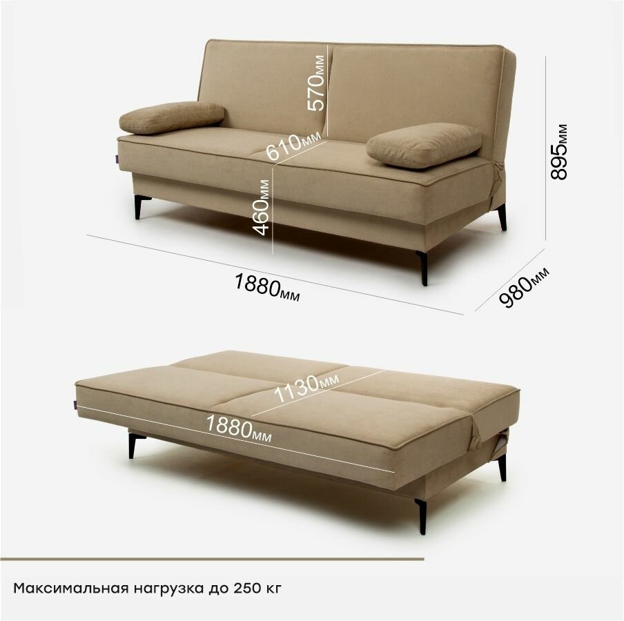 | Особенности | без подлокотников, пружинный блок, раскладная конструкция, ящик для белья |