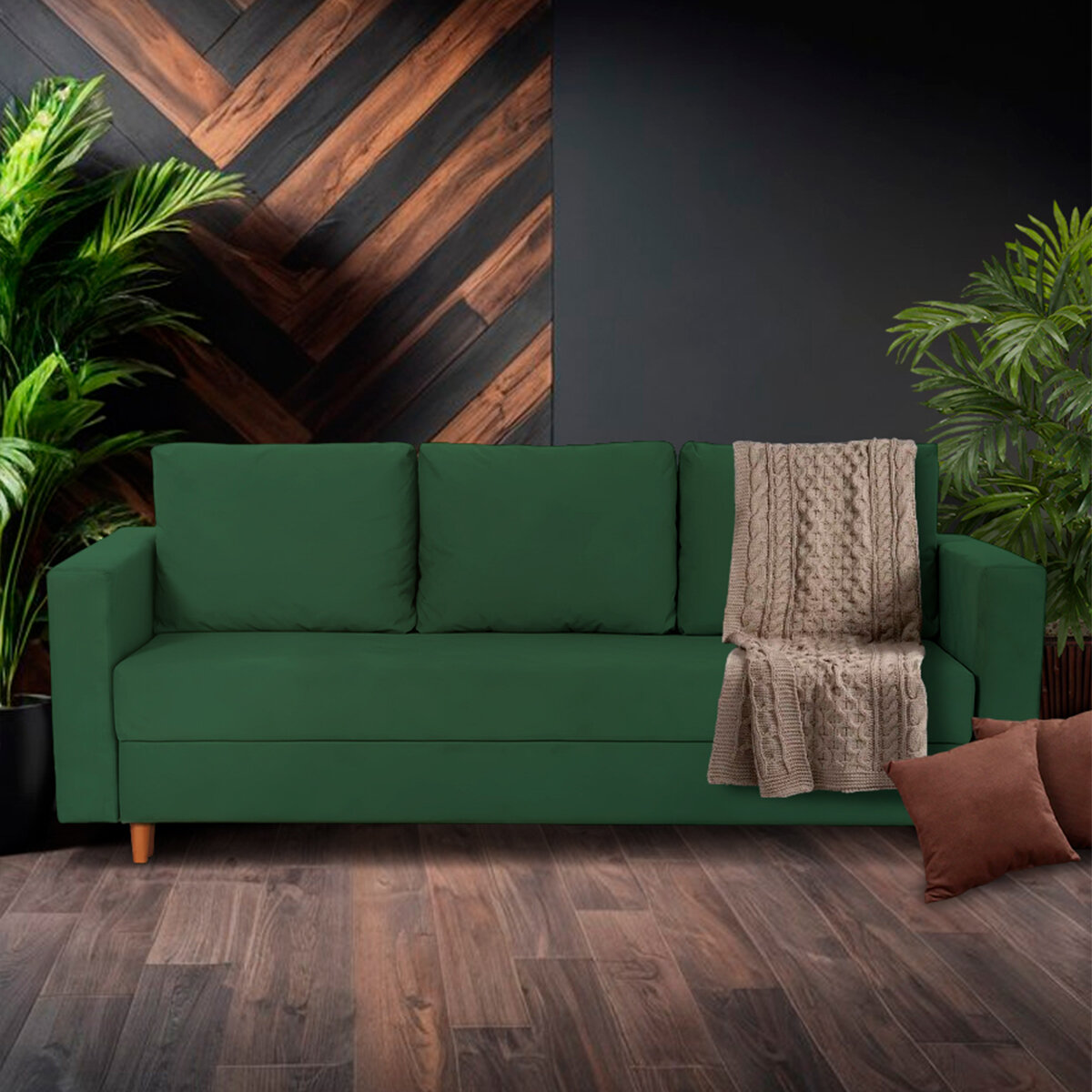 Раскладной диван кровать Ванкувер прямой, механизм еврокнижка, 220х95х85 см, зеленый, диванчик на ножках с ящиком для хранения 33 356 ₽