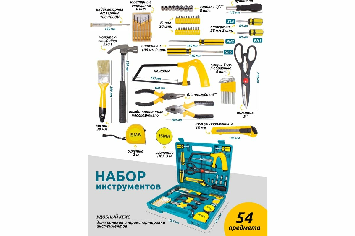 10 цен на ISMA Набор инструментов 54пр. ISMA-2054(50609)