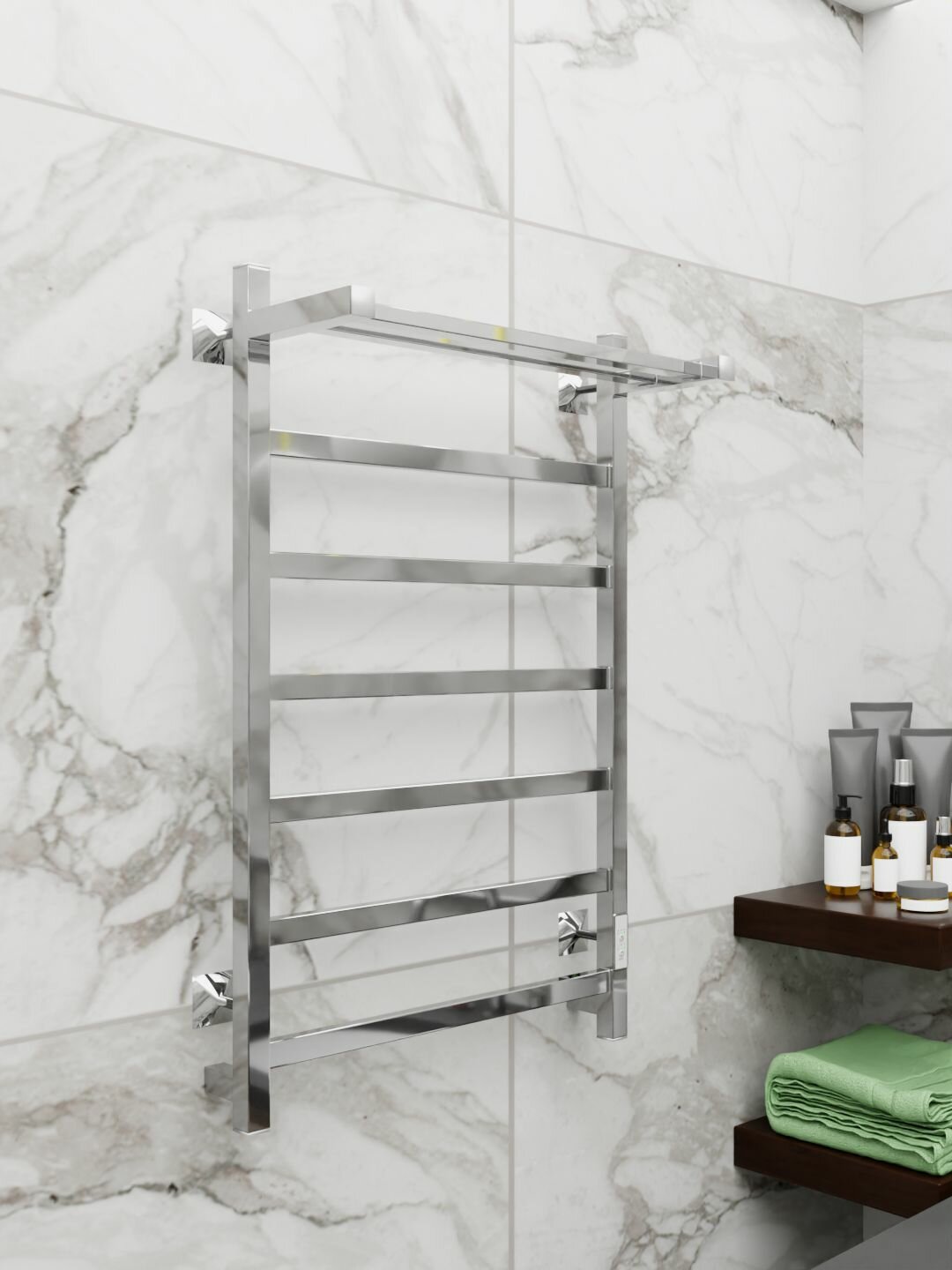 Полотенцесушитель электрический Вэлекан PROF 80x50 Хром с полкой универсальное подключение, скрытый монтаж, таймер, терморегулятор информация: