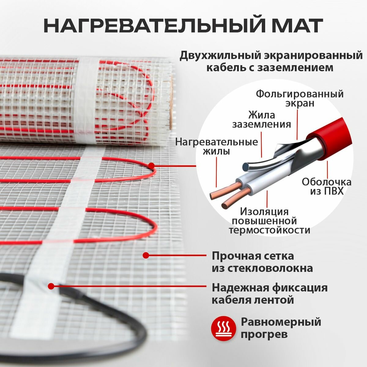 Теплый пол с терморегулятором под плитку электрический мат 10 м2 12 704 ₽