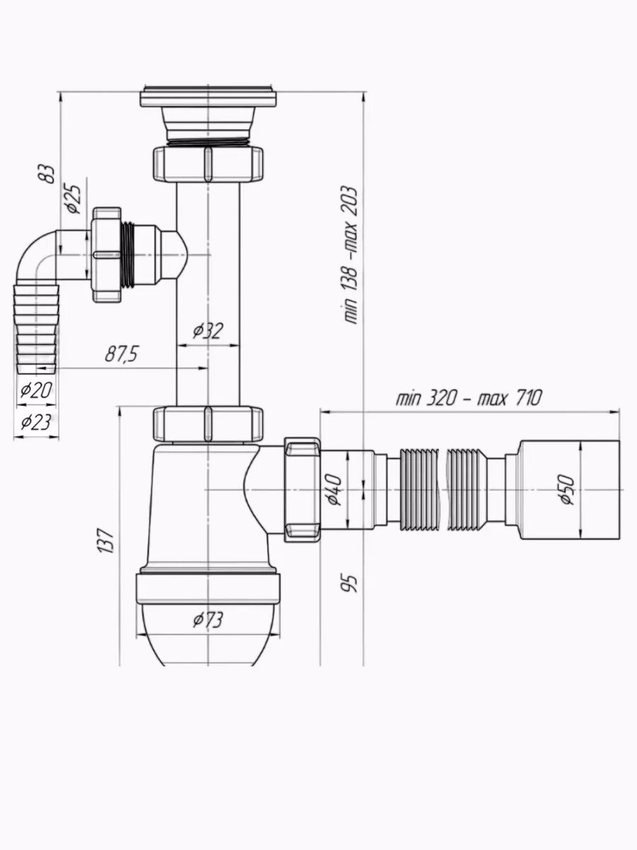 Сифон сливной для кухонных моек с диаметром слива 50-60 мм 666 ₽