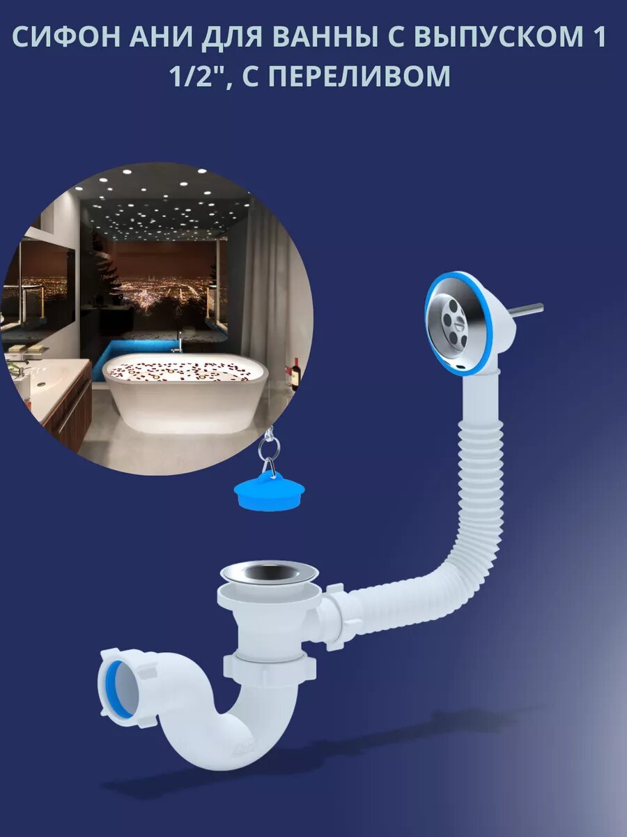Сифон для ванны "АНИ Пласт" Варяг VE155, 1 1/2"х 40/50 мм, с переливом, с гофрой 40/50 мм