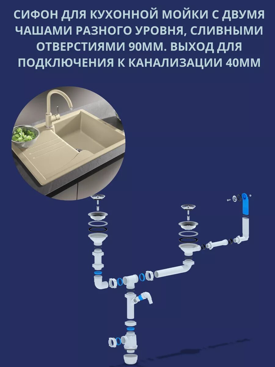 Сифон сливной для кухонных моек с диаметром слива 50-60 мм 666 ₽