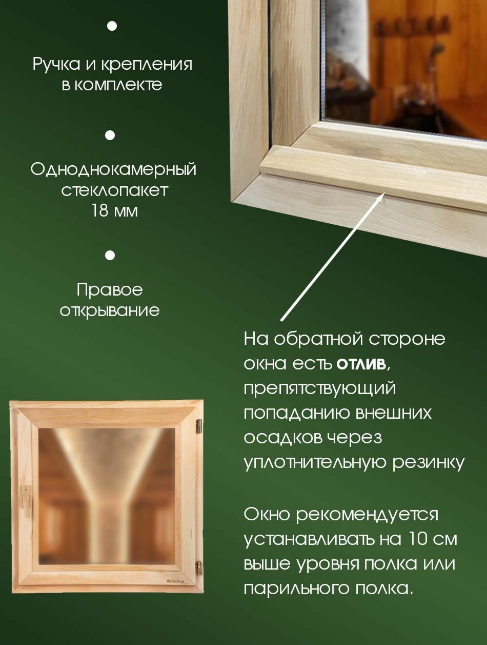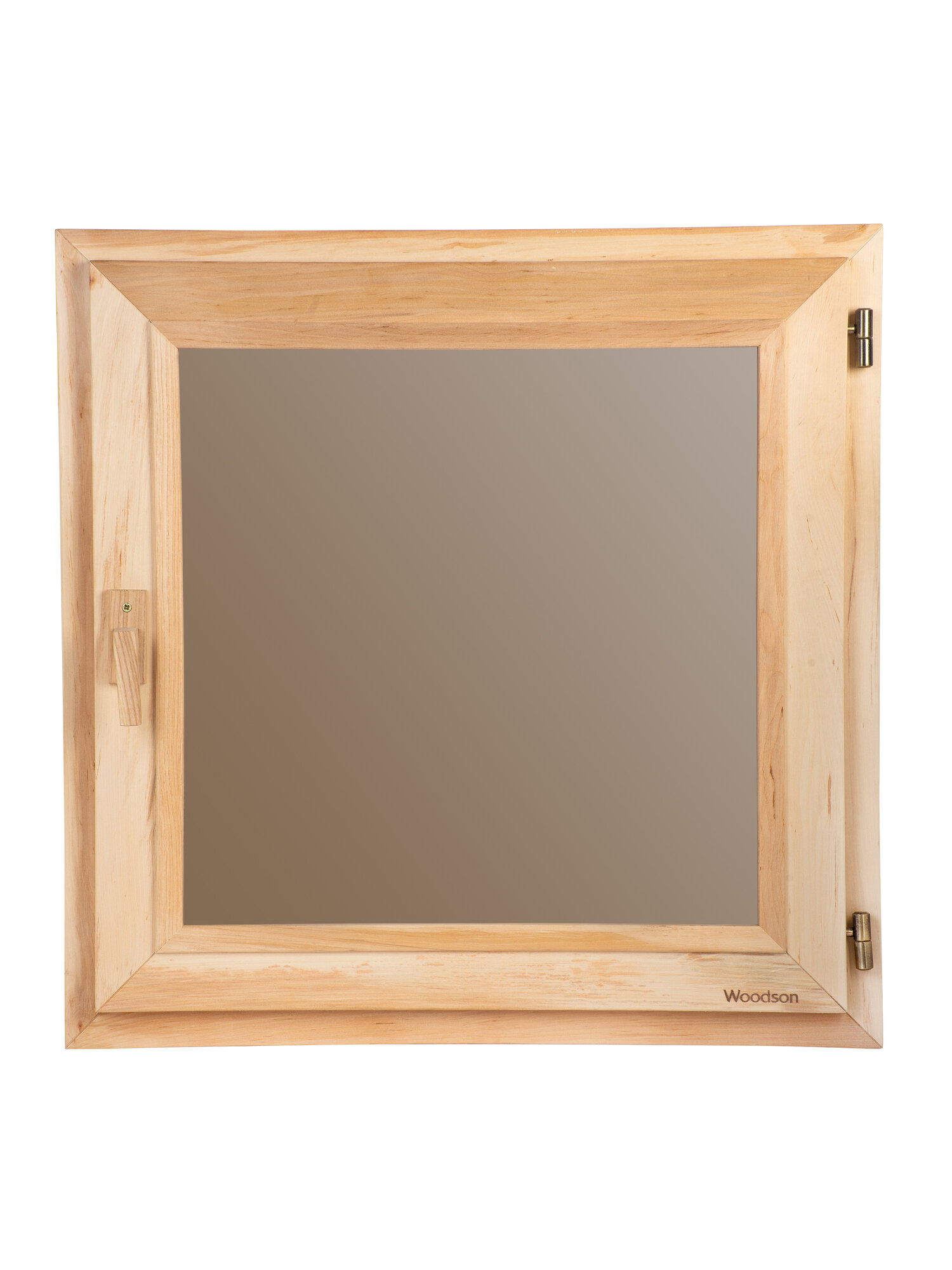 Отзывы на Деревянное окно из ольхи для парного помещения в бане и сауне Woodson с однокамерным стеклопакетом бронзового оттенка и деревянной ручкой, окно размером 50х50 см
