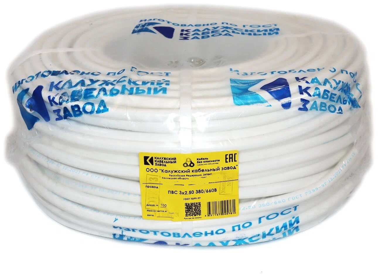 Провод ПВС 3х2,5 ГОСТ Калужский Кабельный Завод (Белый) 40 метров 7 735 ₽