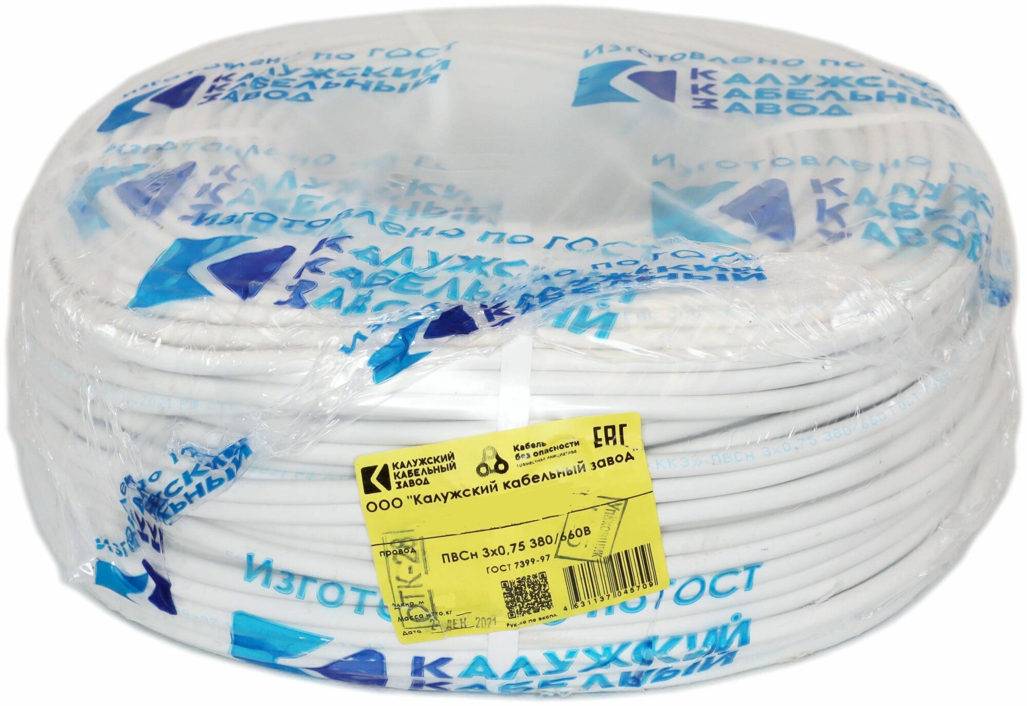 Провод ПВС 3х0,75 ГОСТ Калужский Кабельный Завод (Белый) 100 метров 6 500 ₽