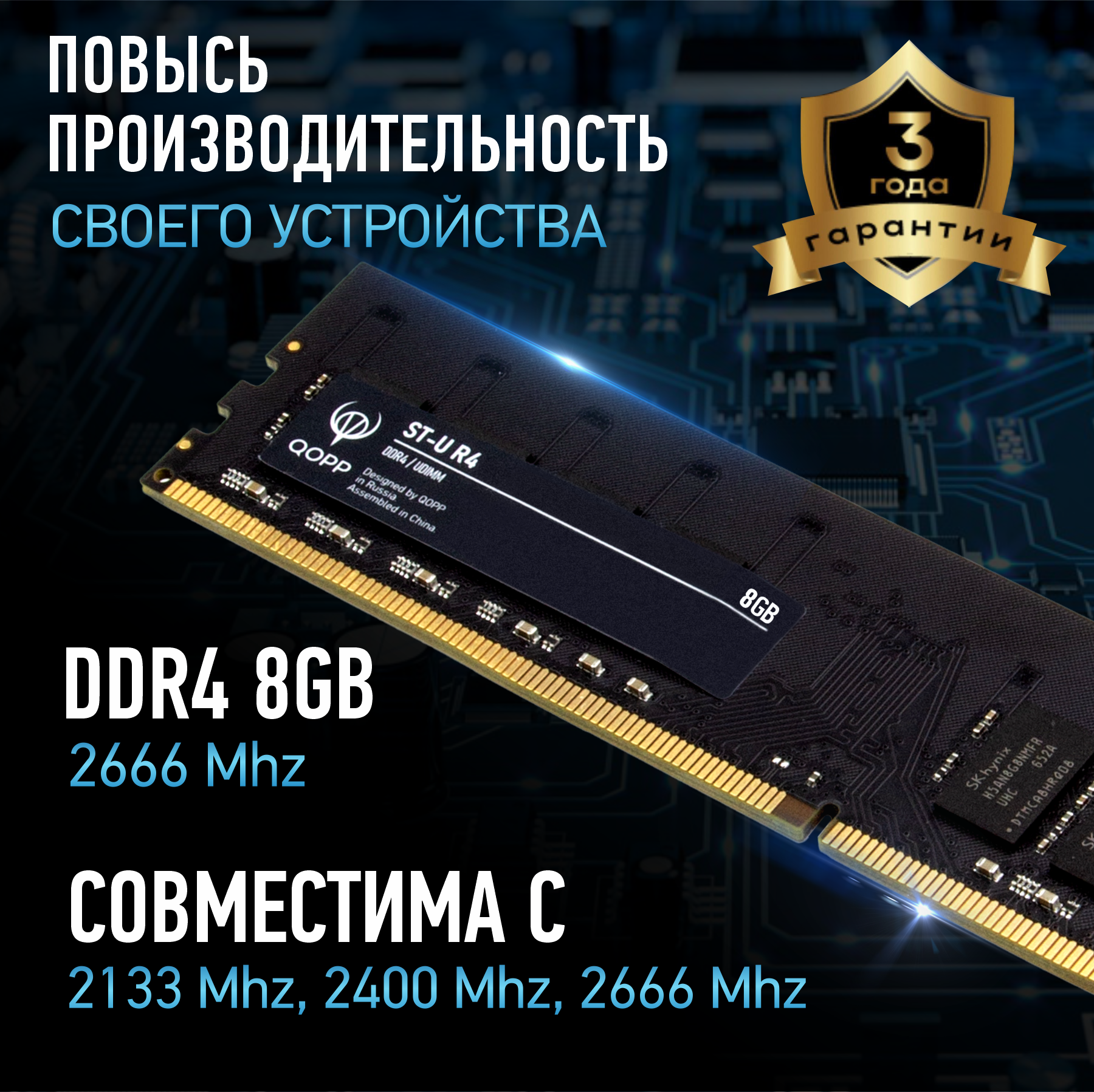 8GB Оперативная память для компьютера QOPP DDR4 U DIMM 2666 Мгц CL 19-19-19-43 информация: