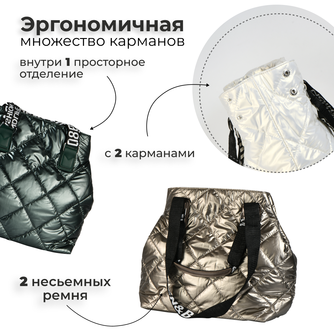 Отзывы на Сумка женская через плечо / Сумка кросс-боди / Зимняя сумка / Шоппер / Сумка на плечо / сумка большая стеганая дутая серый металлик