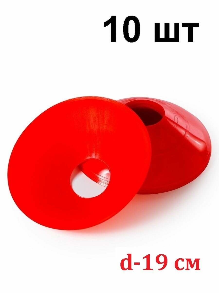 Конусы фишки спортивные Estafit 10 штук высота 5 см, диаметр 19 см, фишки для футбола, красные информация: