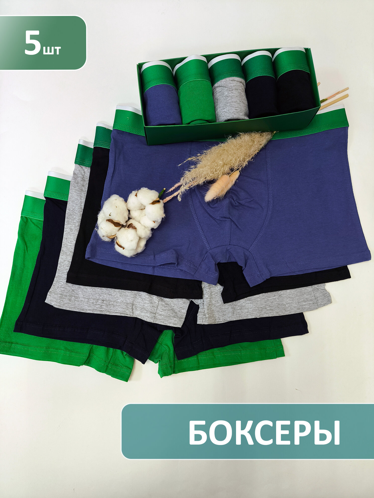 Мужские боксеры 5 штук в подарочной коробке, хлопок 95 %, зеленый цвет, размер 52-54 3XL 1 397 ₽