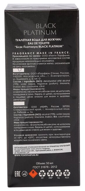Туалетная вода для мужчин Grace Alba Black Platinum, 50 мл 2850574 . информация: