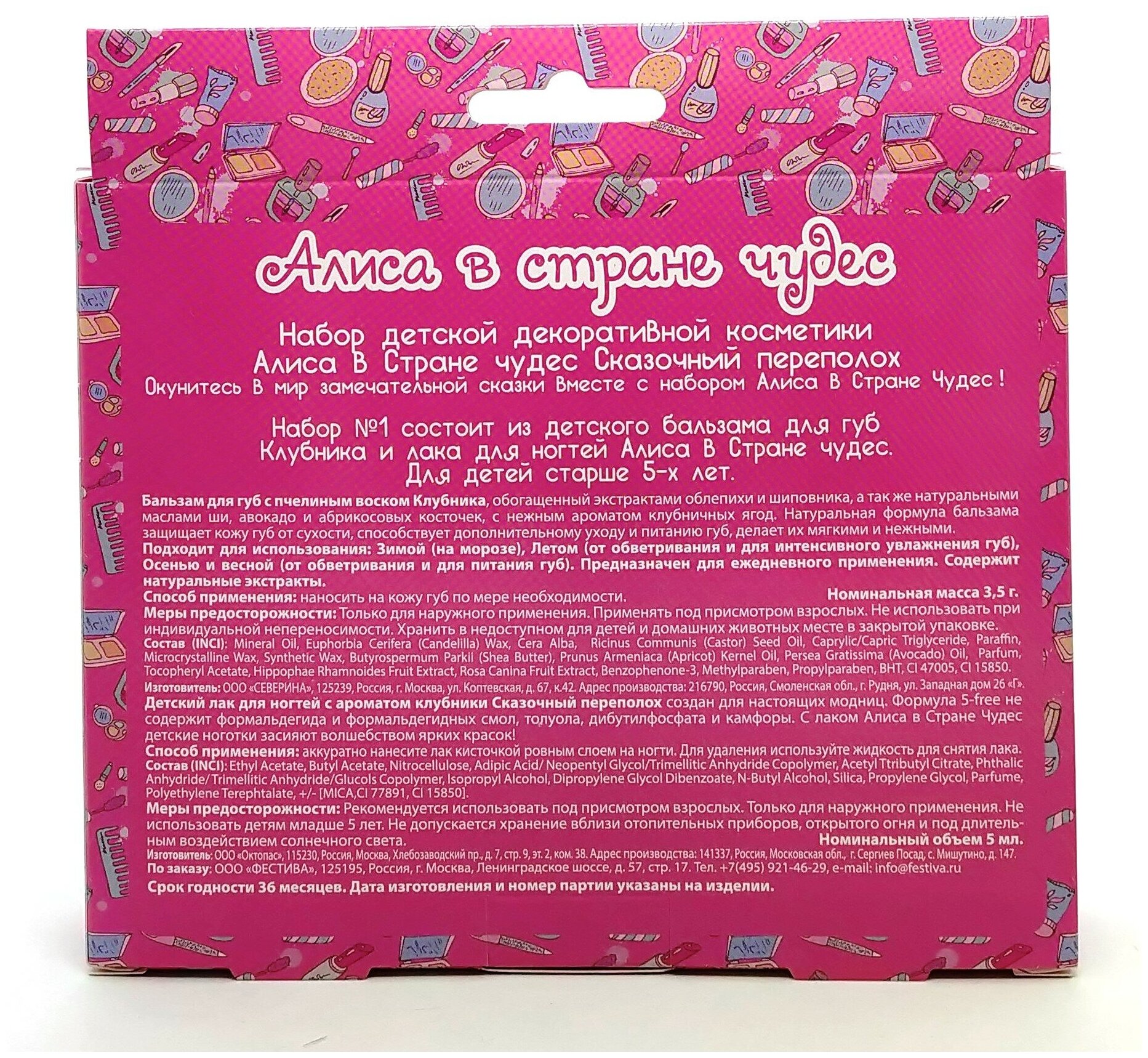 Festiva Детский подарочный набор Алиса в стране чудес, Сказочный переполох: Бальзам для губ Клубника, 3.5 г + Лак для ногтей, 5 мл информация: