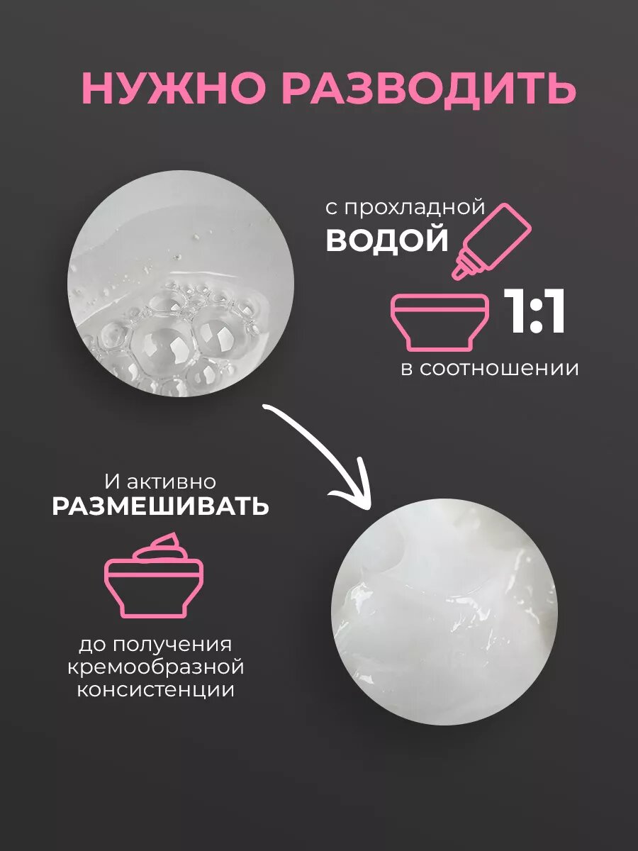 | Способ применения | необходимо смешать одну часть маски и одну часть холодной воды. При взаимодействии смесь превратится в гелеобразную кашицу. Получившуюся смесь нанести на волосы после шампуня на 8-10 секунд (допускается оставлять маску на волосах на 3-5 минут, при сильно поврежденных волосах). Смыть |