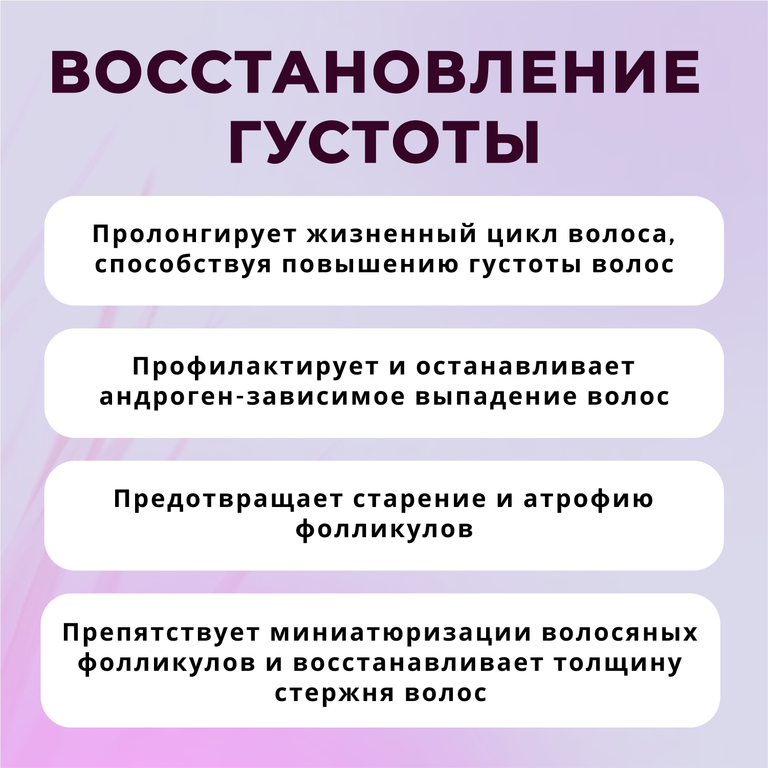 | Эффект | активация роста / восстановление / придание объема / против выпадения / укрепление / уплотнение волос |