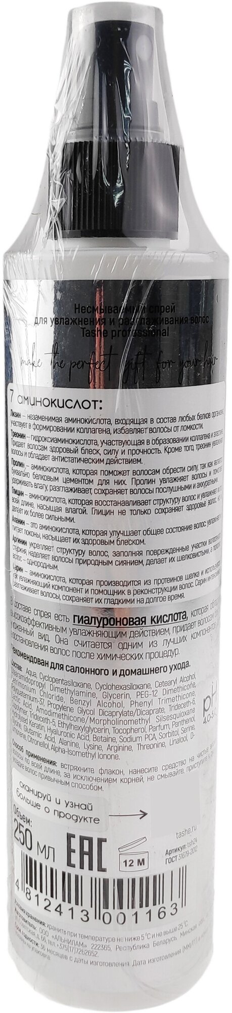 Tashe Cпрей термозащита для волос несмываемый, 250 мл информация: