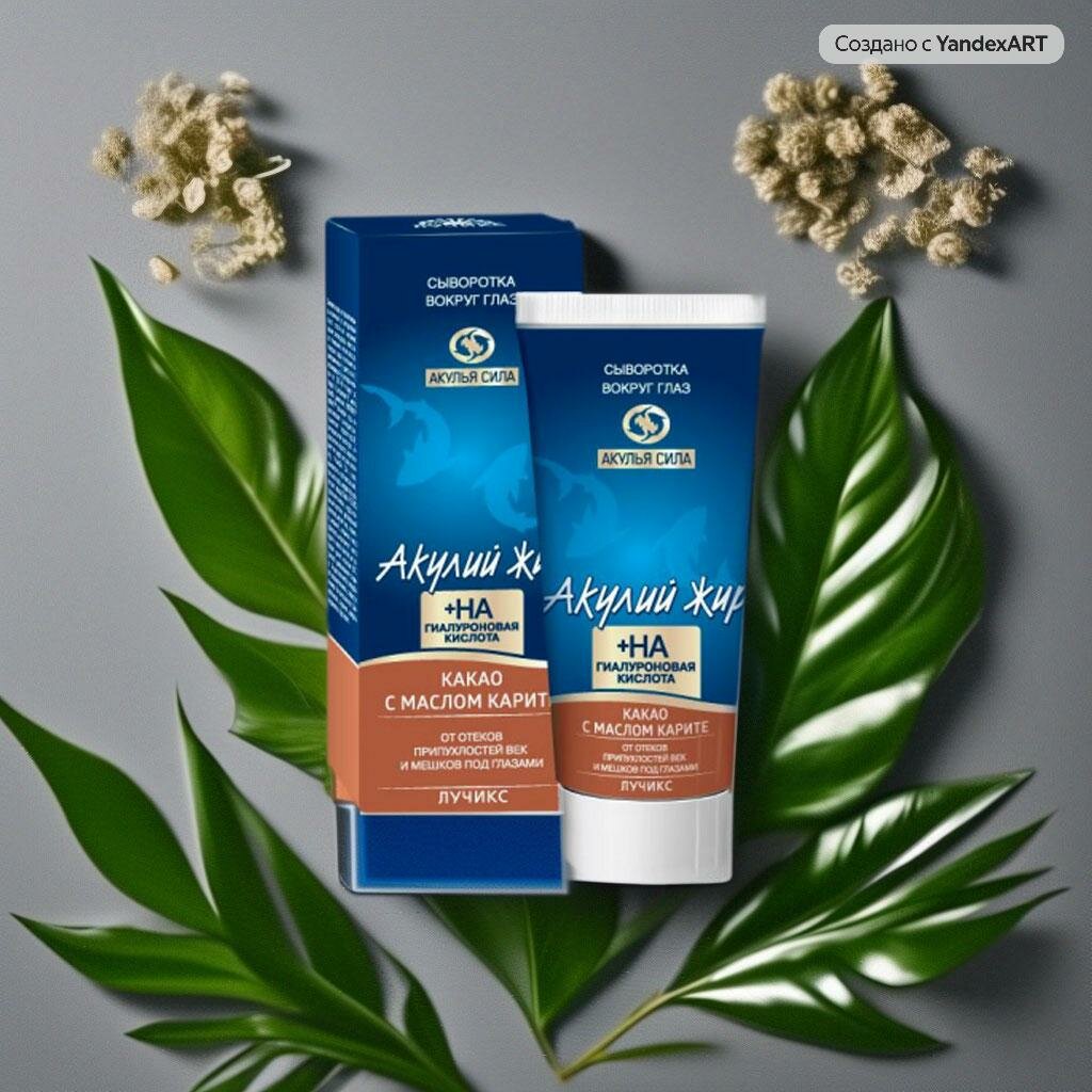 Акулья сила сыворотка от отеков, припухлостей век и мешков под глазами с какао и маслом карите
