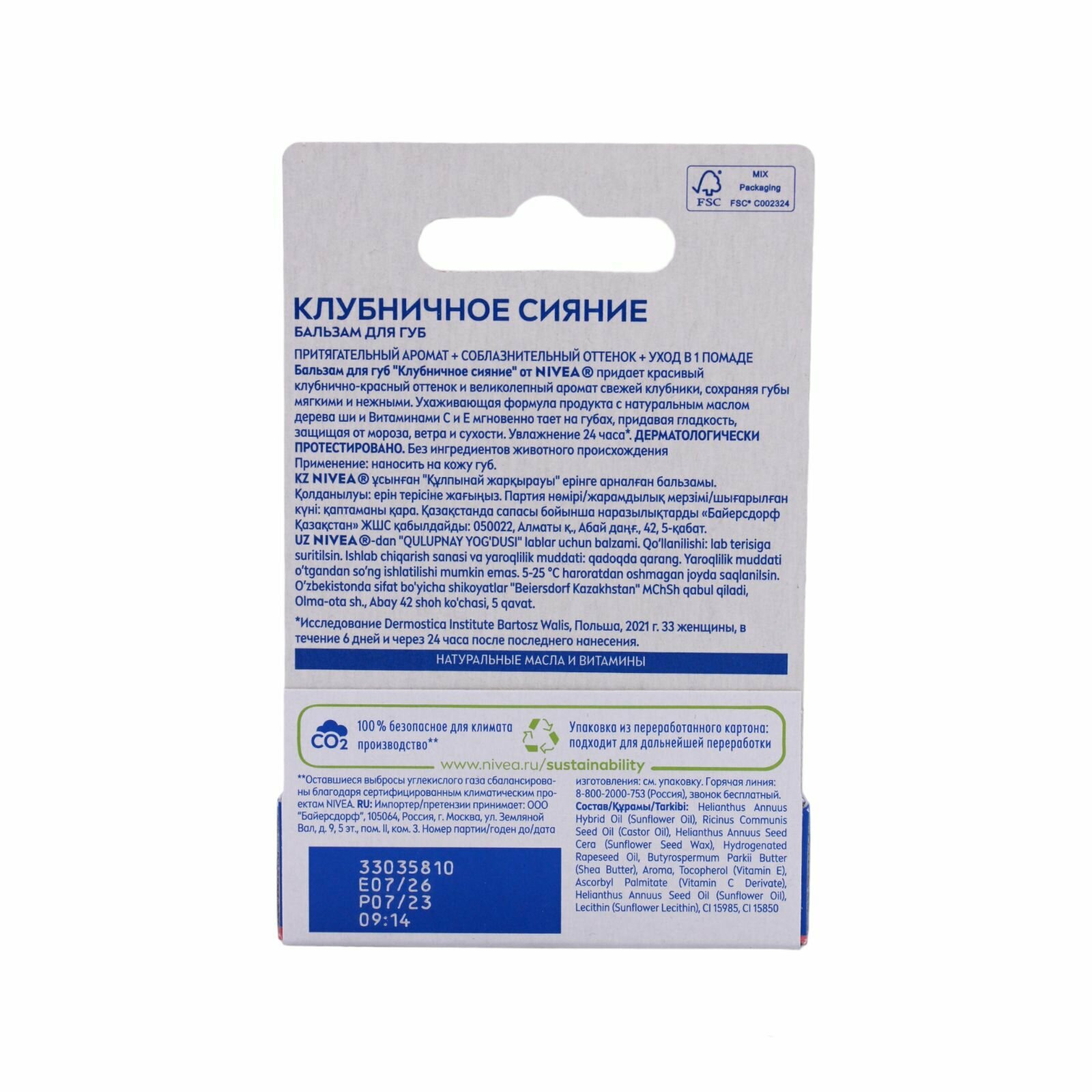 Бальзам для губ Nivea "Фруктовое сияние", Клубника, 4,8 г информация:
