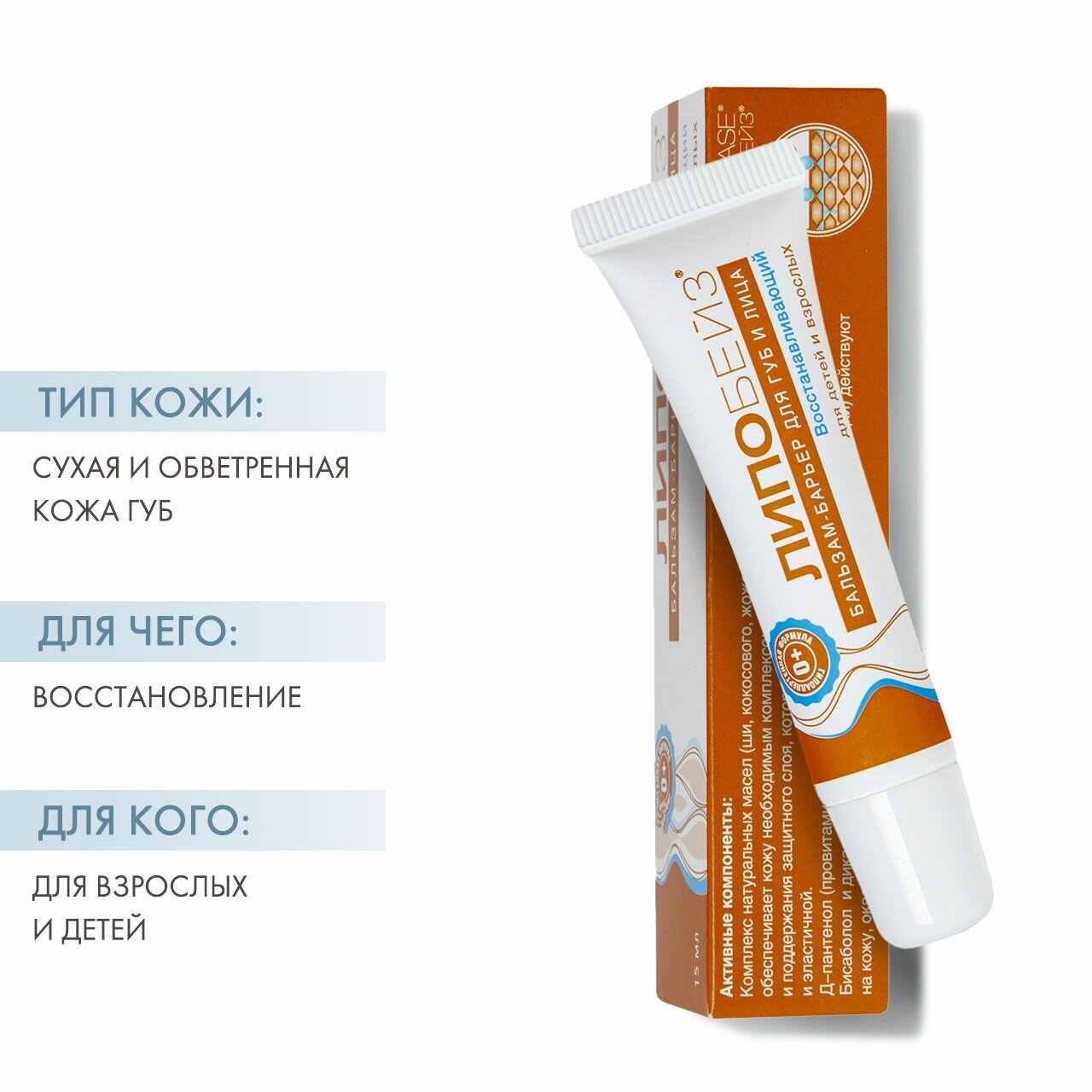 Бальзам-барьер LIPOBASE для губ и лица "Восстанавливающий", 15 мл информация: