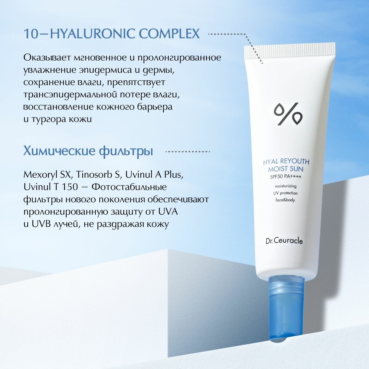 Dr. Ceuracle Hyal Reyouth Moist Sun SPF 50+/PA++++ Солнцезащитный увлажняющий крем с гиалуроновой кислотой, 50 мл