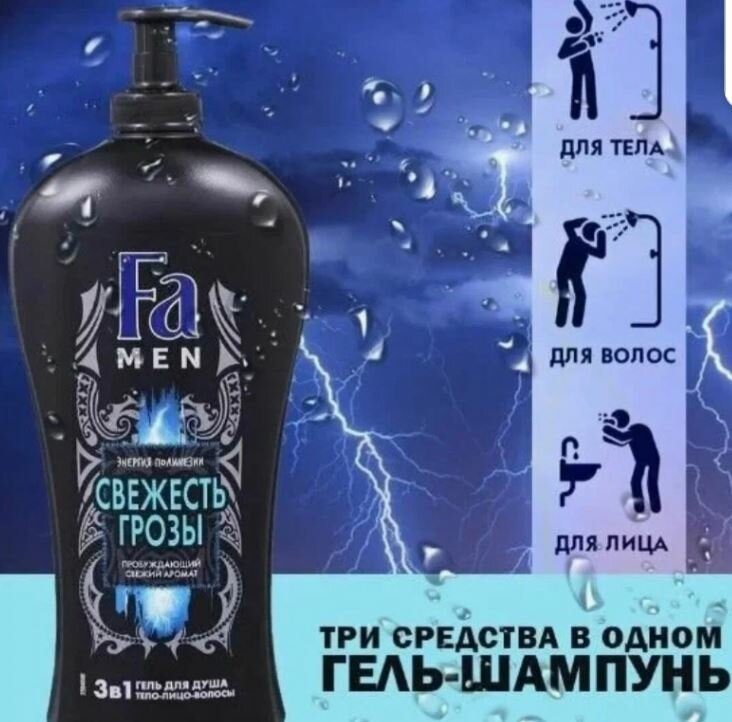 Отзывы на Fa 3в1 Гель для душа мужской для тела, волос и лица, Свежесть грозы, 750 мл