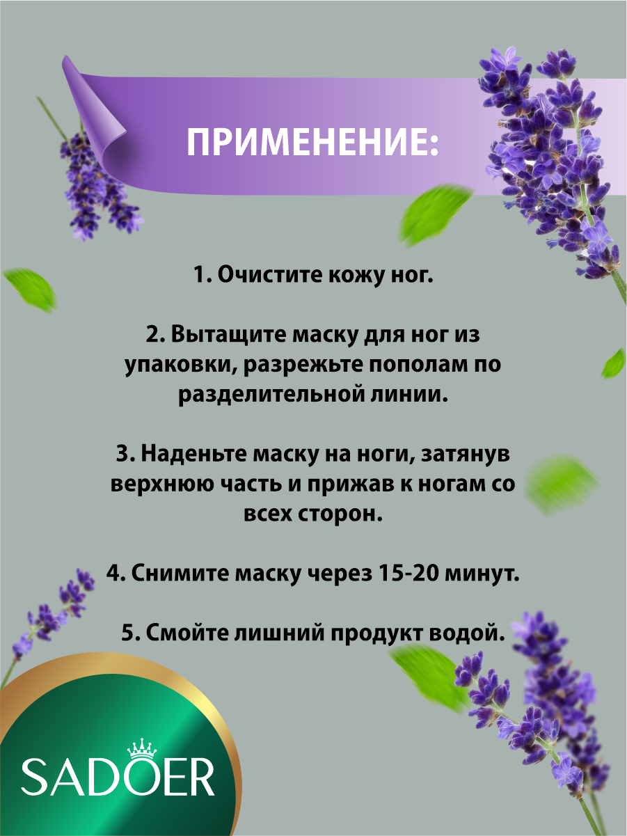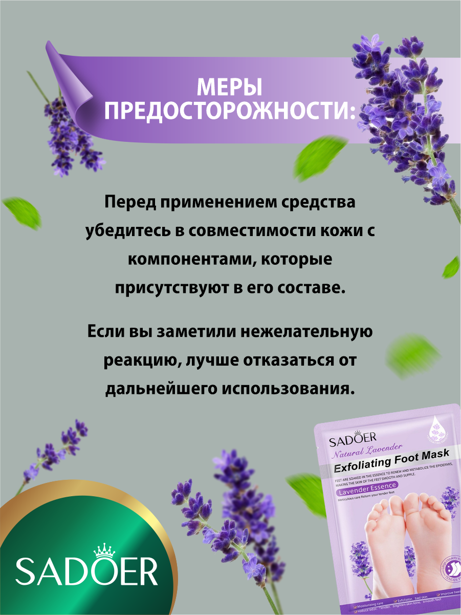 Маска для ног отшелушивающая, педикюрные носочки SADOER с лавандой 135 ₽