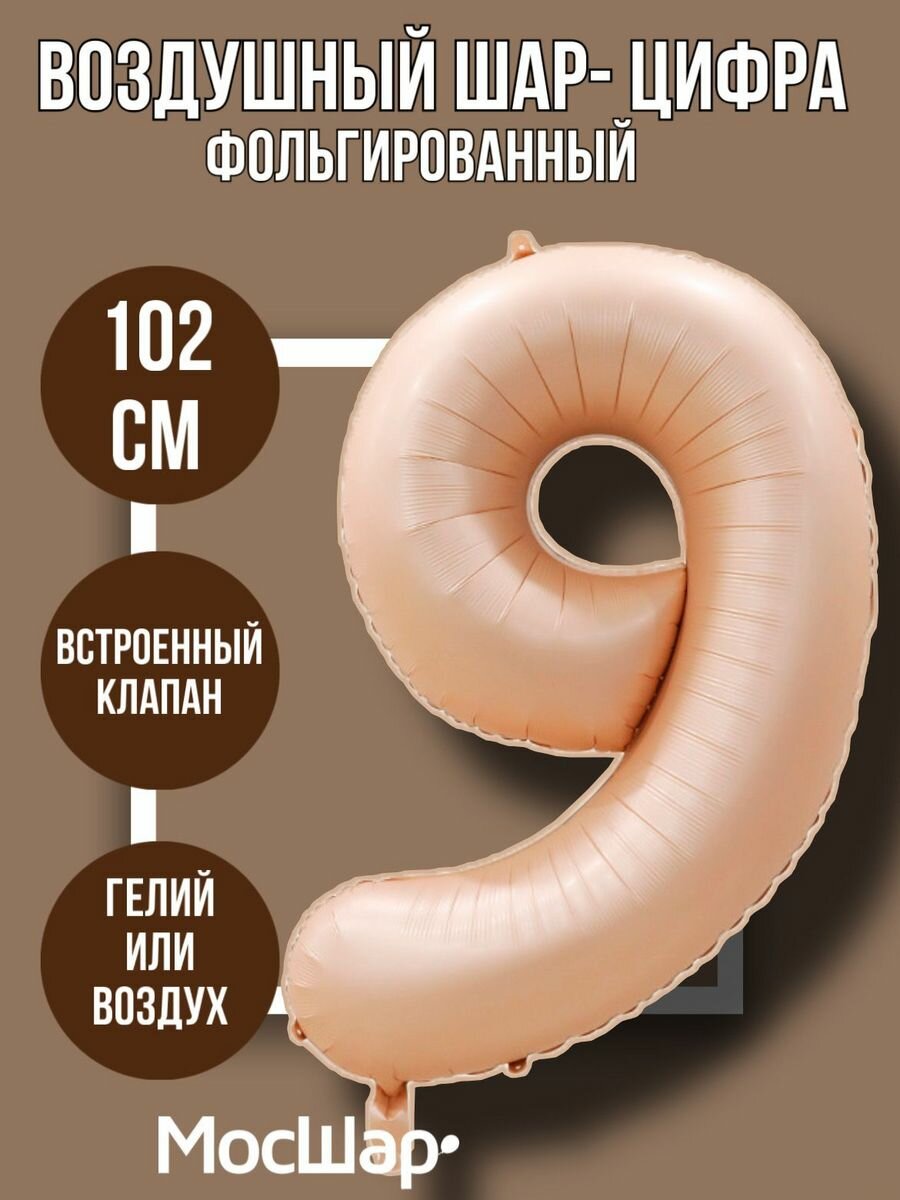 Фольгированный воздушный шар цифра 9 девять бежевый 100см - Мосшар информация: