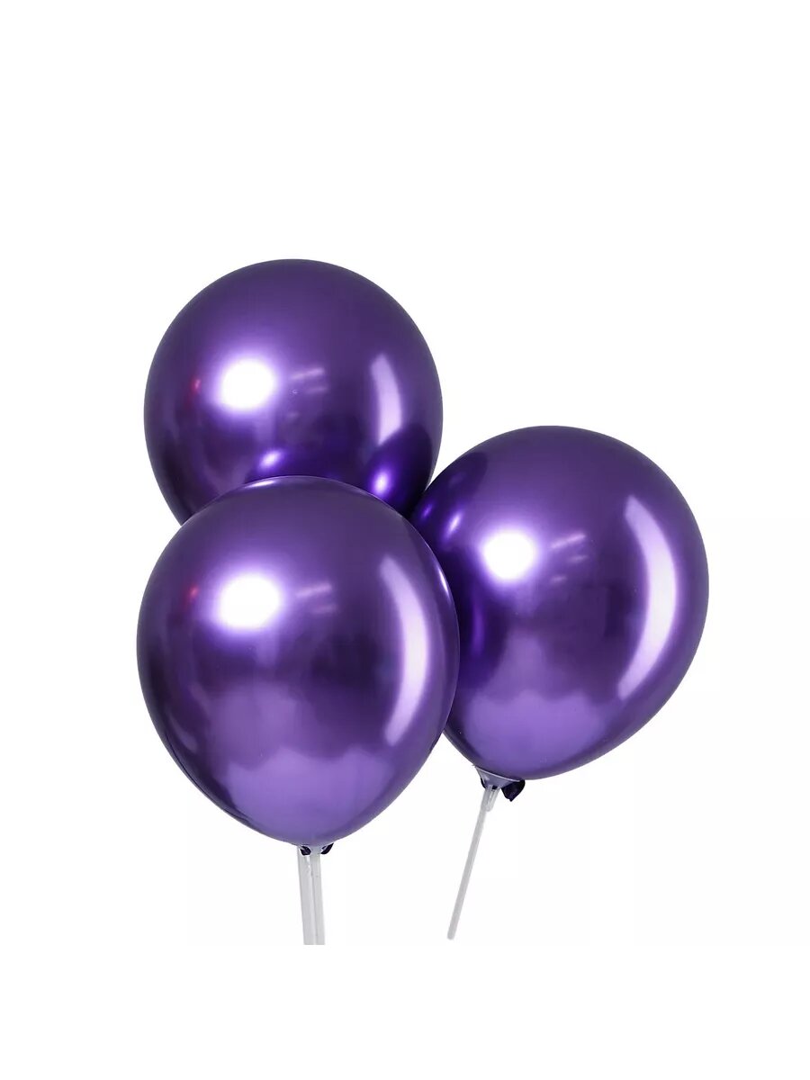 Шар латексный 12", "Хром", металл, 5 шт, цвет фиолетовый