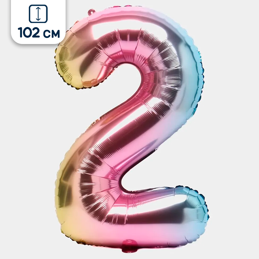 Воздушный шар фольгированный Riota Цифра 2, Радуга, 102 см информация: