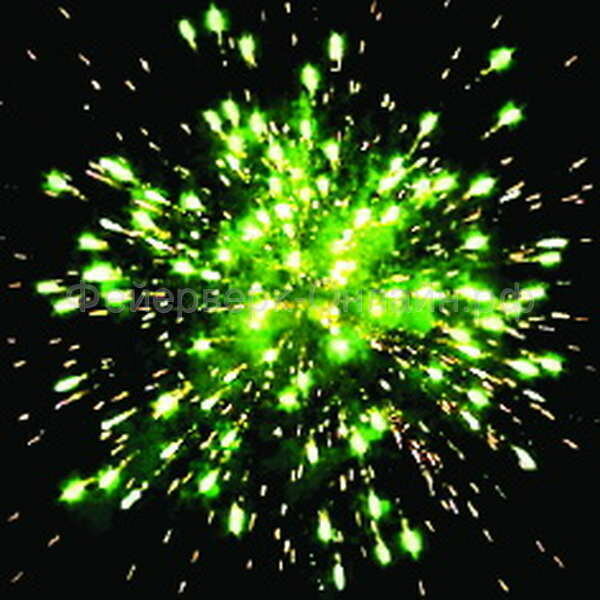 | Эффекты | Эффекты: 1. Красно-белая мерцающая сфера (пион). 2. Зеленая сфера (пион) и треск. 3. Зелено-фиолетовая сфера (пион). 4. Синяя сфера (пион) и трещащие разрывы (трещащий дождь). |