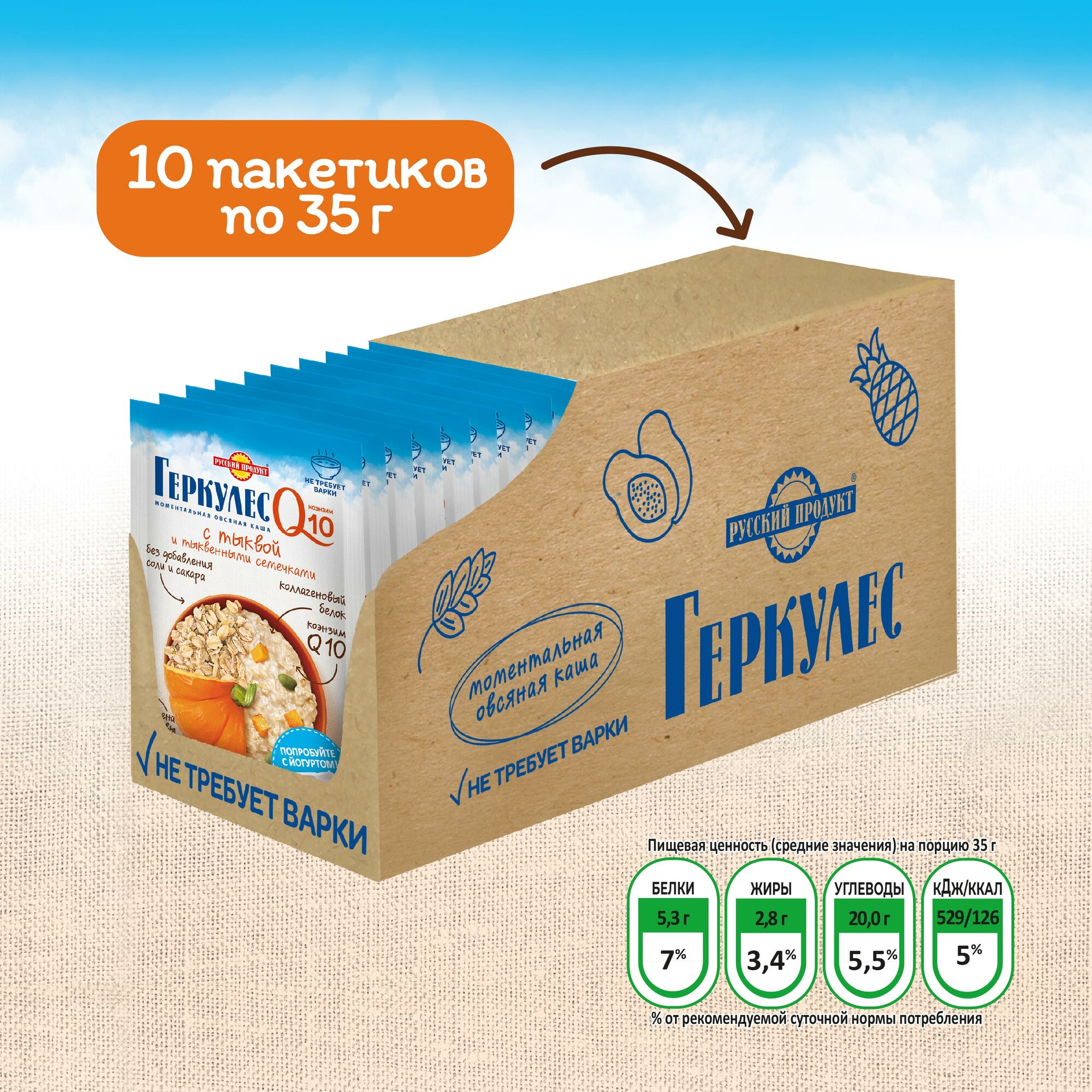 10 цен на Овсяная каша моментальная "Геркулес Q10" с тыквой и тыквенными семечками 35г х 10шт, Русский Продукт