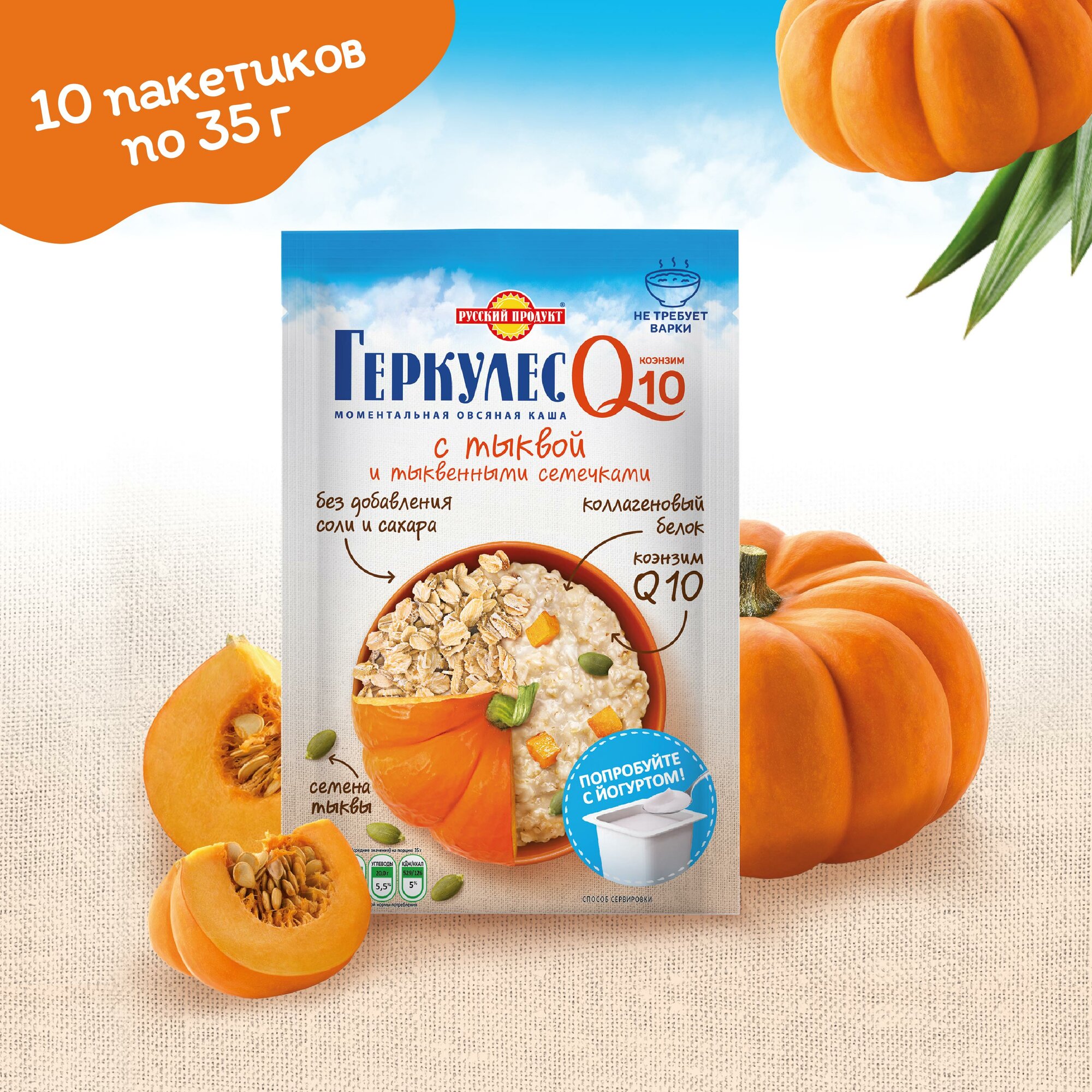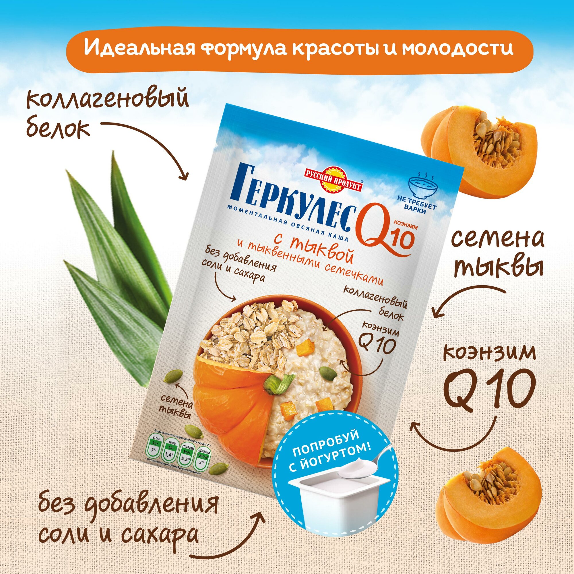 Овсяная каша моментальная "Геркулес Q10" с тыквой и тыквенными семечками 35г х 10шт, Русский Продукт информация:
