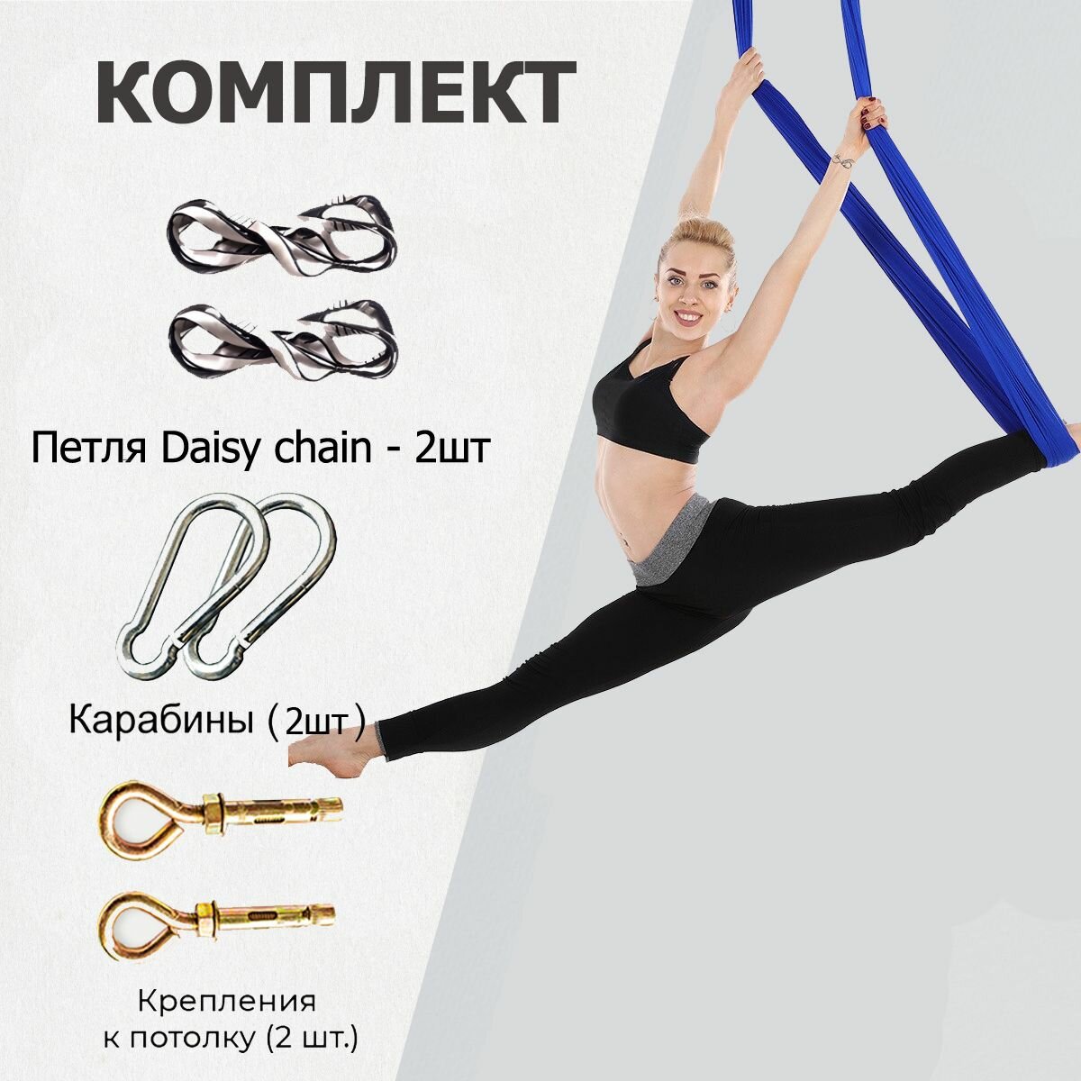 10 цен на Гамак для йоги Rekoy нейлон, 5м*2.8м, крепление к потолку, тёмно-синий