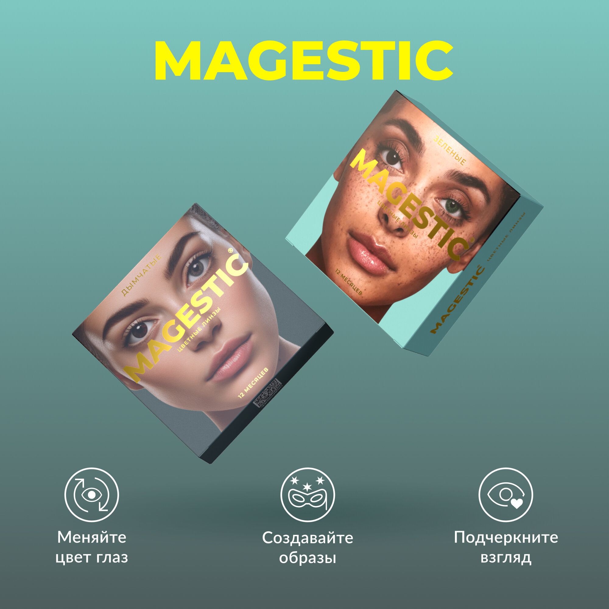 Цветные дымчатые + зеленые контактные линзы для глаз MAGESTIC 2 пары, 12 месяцев, 0.00, диаметр 14,2 мм, кривизна 8,6 мм