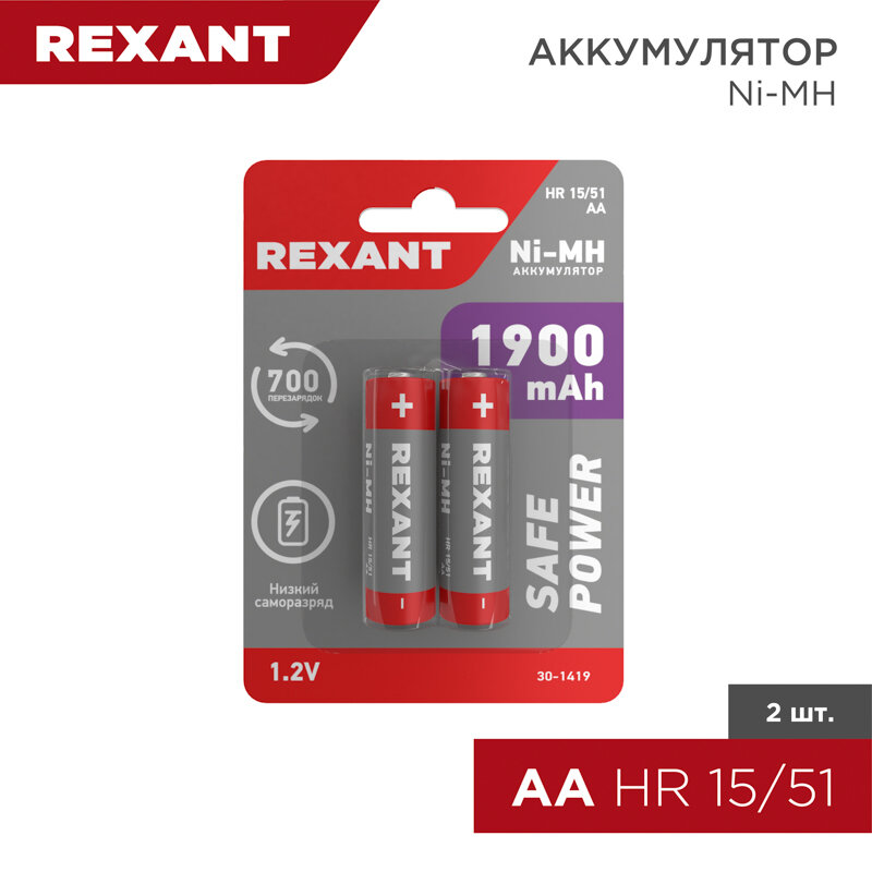Аккумулятор REXANT Rechargeable AA 1,2V 30-1423 2шт. информация: